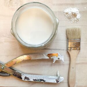L’aspect verni de mes créations provient de la pose d’un émail entre la première et la deuxième cuisson. L’émail (transparent ou à effets) a une composition proche de celle du verre, s’applique à l’état liquide et se révèle (fond) lors de la 2e cuisson pour offrir à la pièce un fini étanche et le plus souvent brillant.