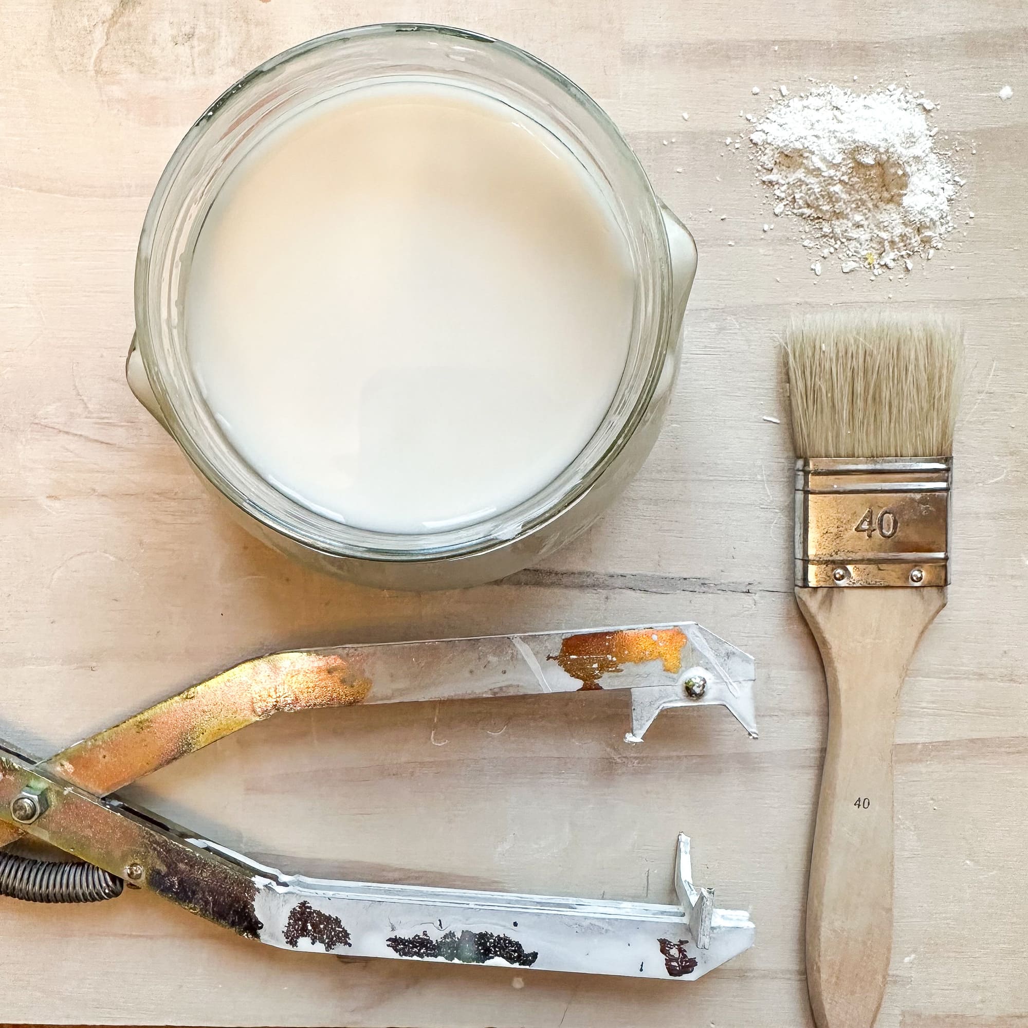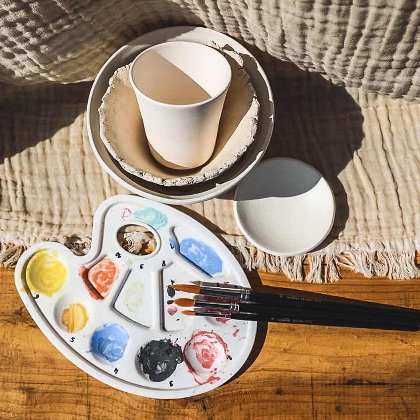 Lorsque je décors au pinceau, j'utilise des engobes, qui sont l'équivalent de peintures qui résistent aux températures élevées des cuissons. Il s'agit de recettes à base de terre, de pigments et d'eau, qui permettent de produire des décors pérennes qui n'ont aucun risque de disparaître avec le temps (ils sont en plus protégés par une couche d'émail).